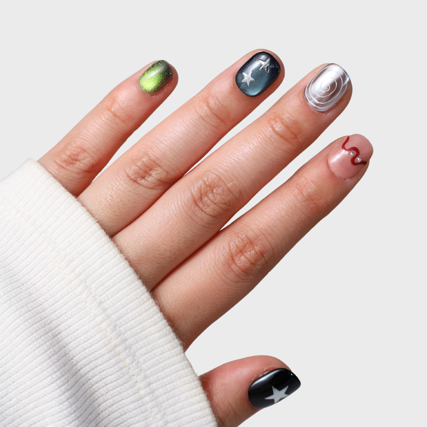 Made of salon-grade acrylic and gels, designed for durability and reusability