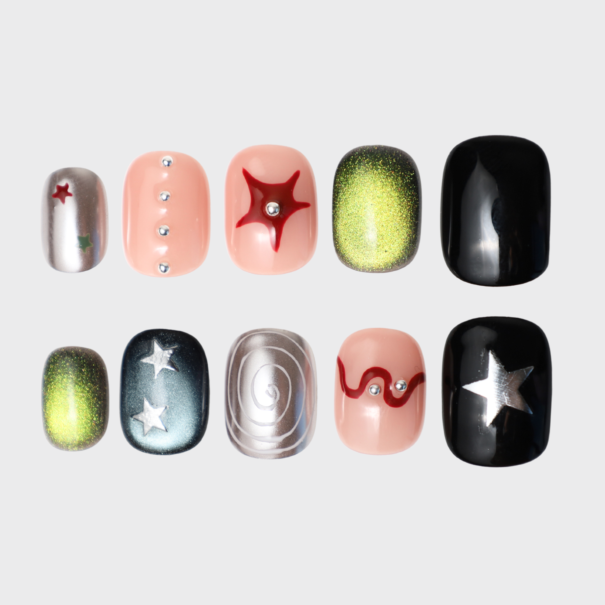10 handcrafted reusable nails & tools - Easy to apply, remove and reuse.