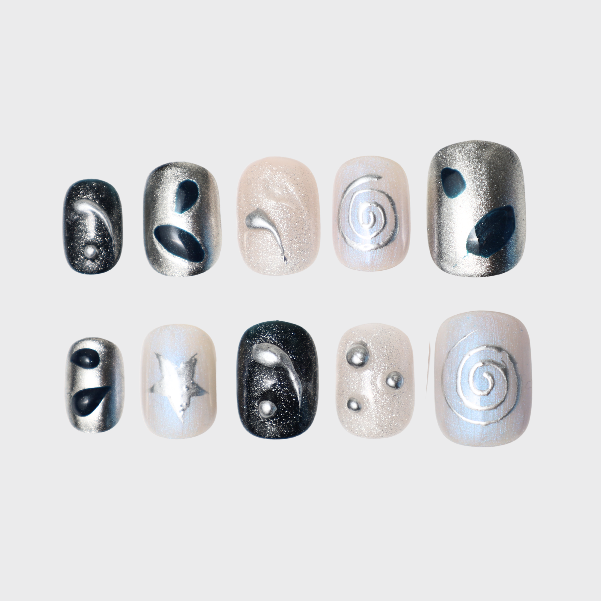 10 handcrafted reusable nails & tools - Easy to apply, remove and reuse.